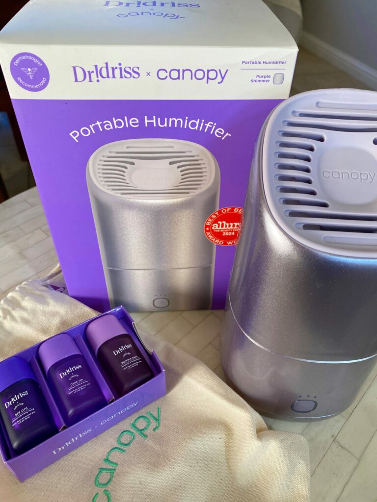 New portable humidifier! This is from the Canopy x Dr. Idriss collection and it’s a gorgeous purple chrome color. I have a couple of their portable humidifiers and they’re a must-have for travel. They inhibit mold and you can easily take them apart and wash in the dishwasher.