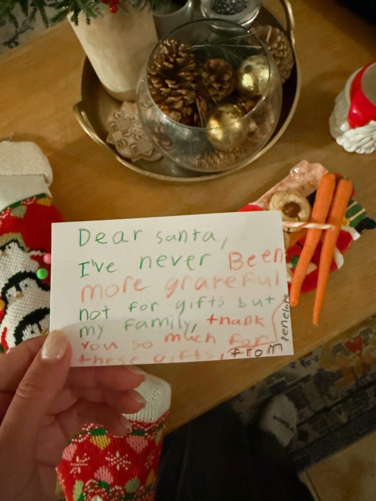 We opened gifts with dad’s side of the fam and then came home for an *attempted* early bedtime for the kids (lol). I went to midnight mass solo which has become an unintentional but beautiful tradition. I also went last year by myself and loved it.