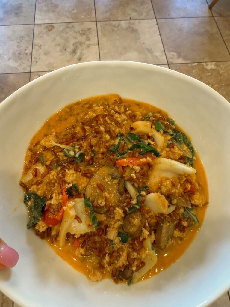 This red Thai curry with ground chicken with flavorful, had a ton of veggies and 29g of protein.