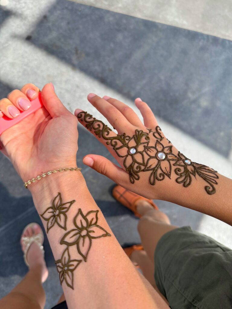 After beach time, the girls were hungry, so we headed to Belmont Park for lunch, P and I got henna tattoos,